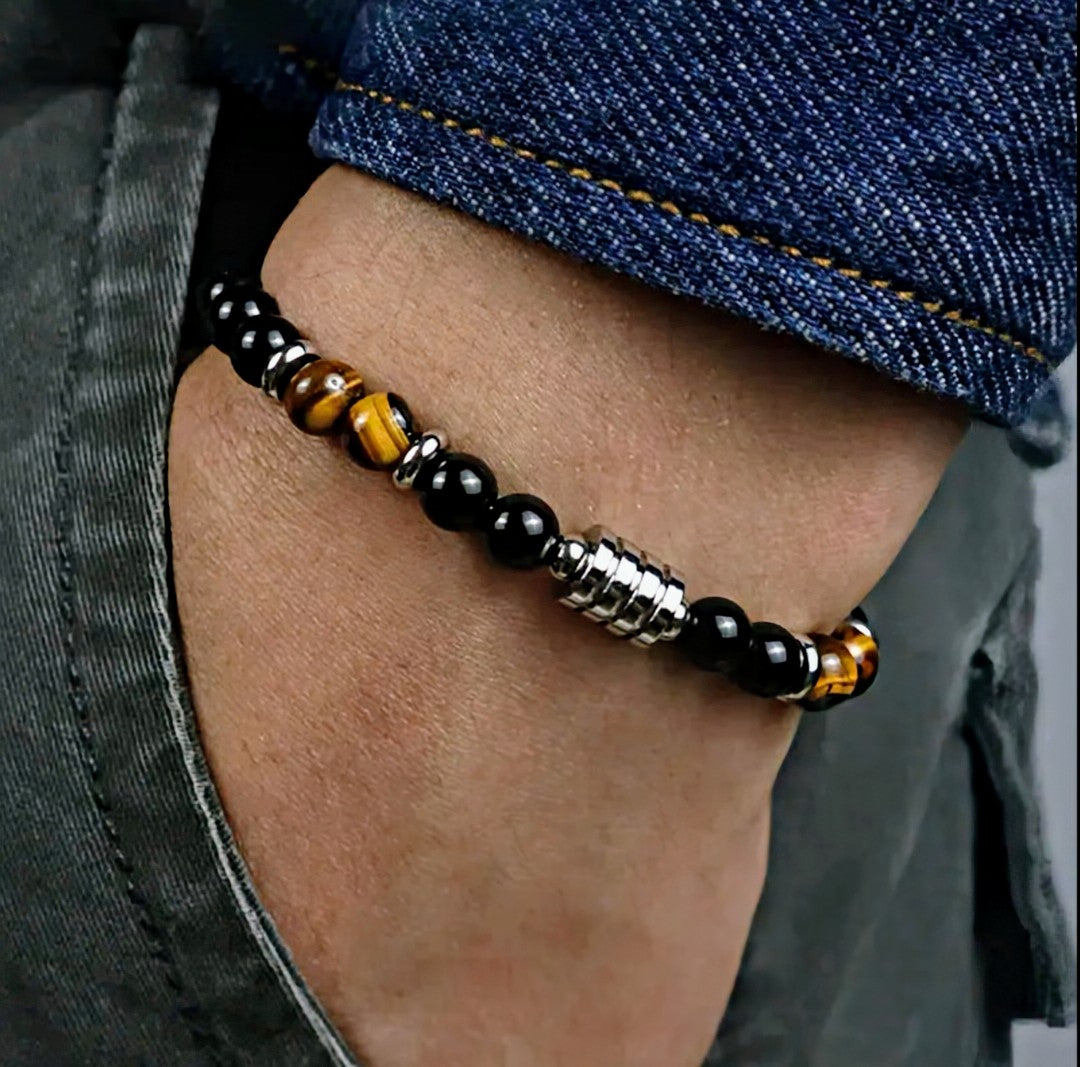 Pulsera de hombre en cuentas de ojo de tigre y acero inoxidable, ¡muy chic! (Envío GRATIS)