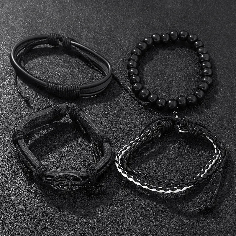 Materiales de las 4 pulseras: piel sintética/algodón/acero inoxidable