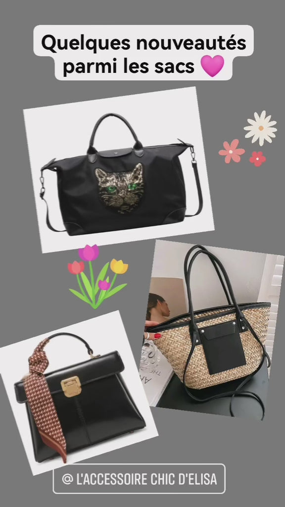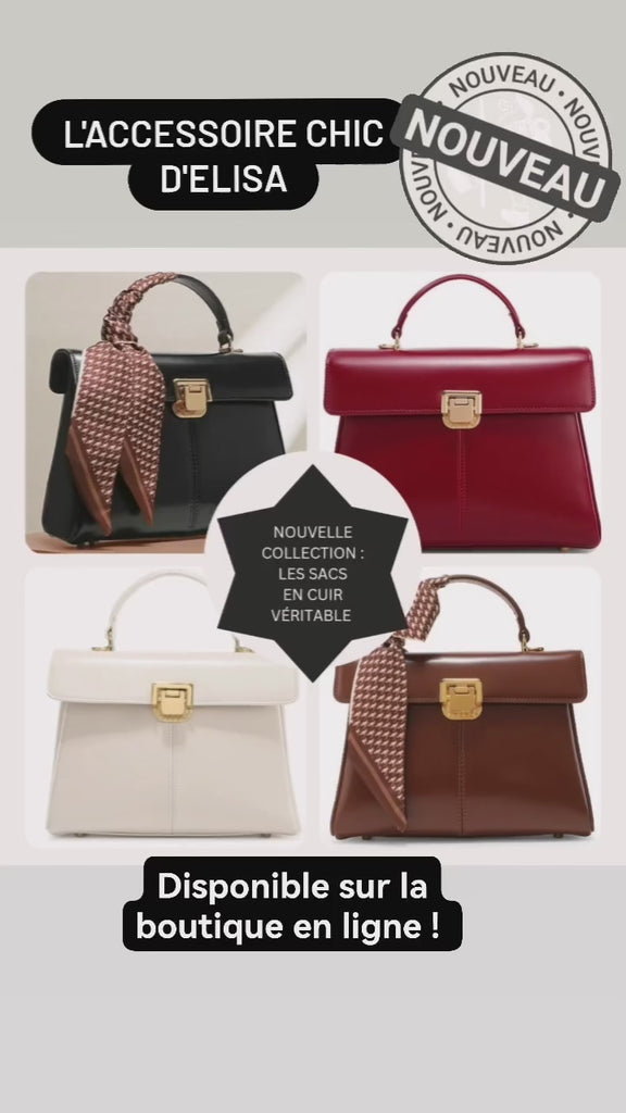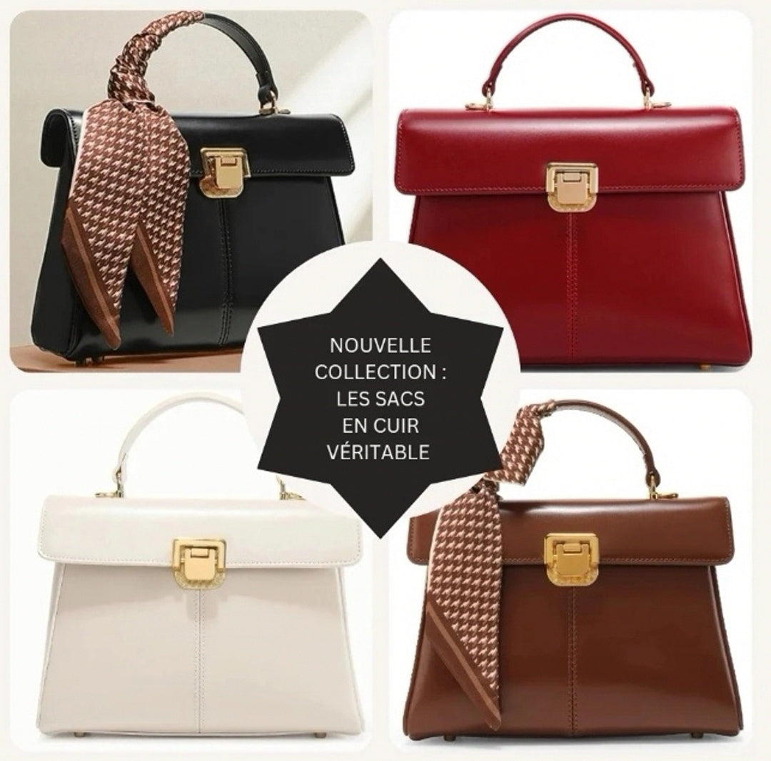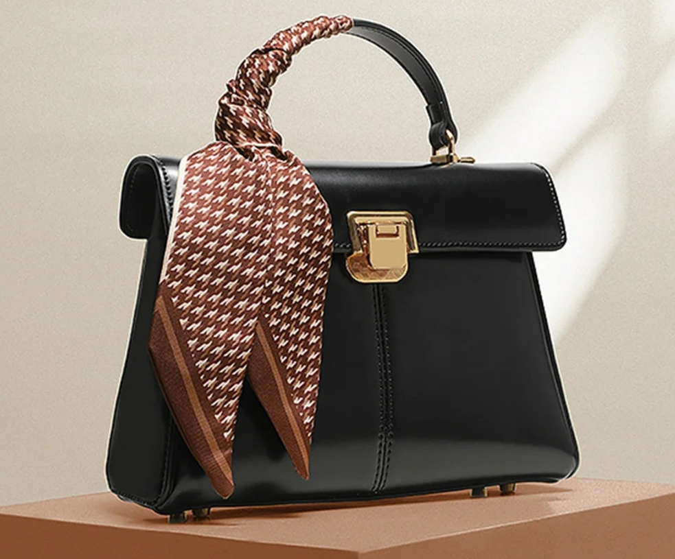 Sac à Main NOIR en Cuir véritable avec petit foulard décoratif amovible Style luxueux & ultra chic ! (LIVRAISON OFFERTE)